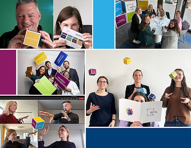 Anschließend startete die Kommunikation der Unternehmenswerte. Nachdem sie zunächst im Februar 2024 Thema der Jahresauftakttagung waren, an der rund 250 Führungskräfte teilnahmen, wurden sie anschließend den Mitarbeitenden beim All Colleague Call vorgestellt, der im März 2024 stattfand.